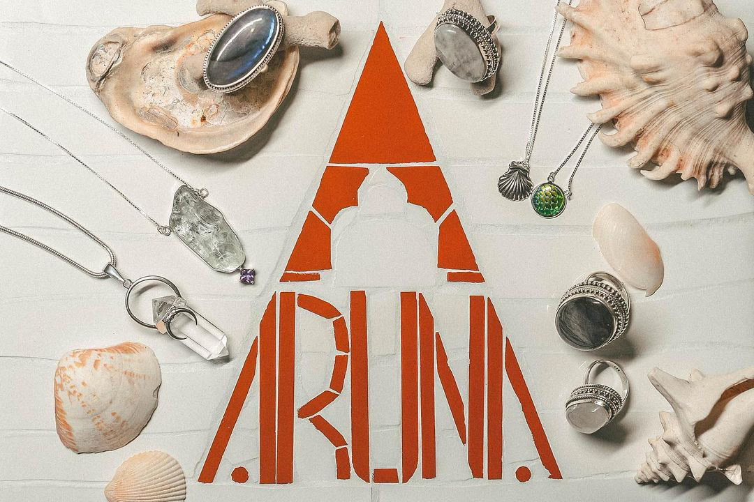 Marca Criada em 2017. O projeto nasceu quando a fundadora Cecília Borges teve a ideia de oferecer no mercado mais que uma joia, e sim uma experiência nova de usar um amuleto. Com base a sua essência, exploramos o seu estilo de vida e aplicamos de forma sintetizada na marca. O logo trás o Taj Mahal, uma das sete maravilhas do mundo e patrimônio mundial da humanidade, localizado na Índia. O Taj Mahal demorou 20 anos pra ser construído e foi feito com pedras preciosas como: Aruna, Jade, Ametista, Turquesa e Cristal. Aruna é um nome hindu e significa nascer do sol, nascer do dia, o amanhecer que traz esperança e renovação. O movimento pela essência da natureza, aos poucos foi criando uma identidade única, mística e ao mesmo tempo super moderna. O diferencial da Aruna é promover uma experiência única pra quem adquiri os Amuletos (joias).
